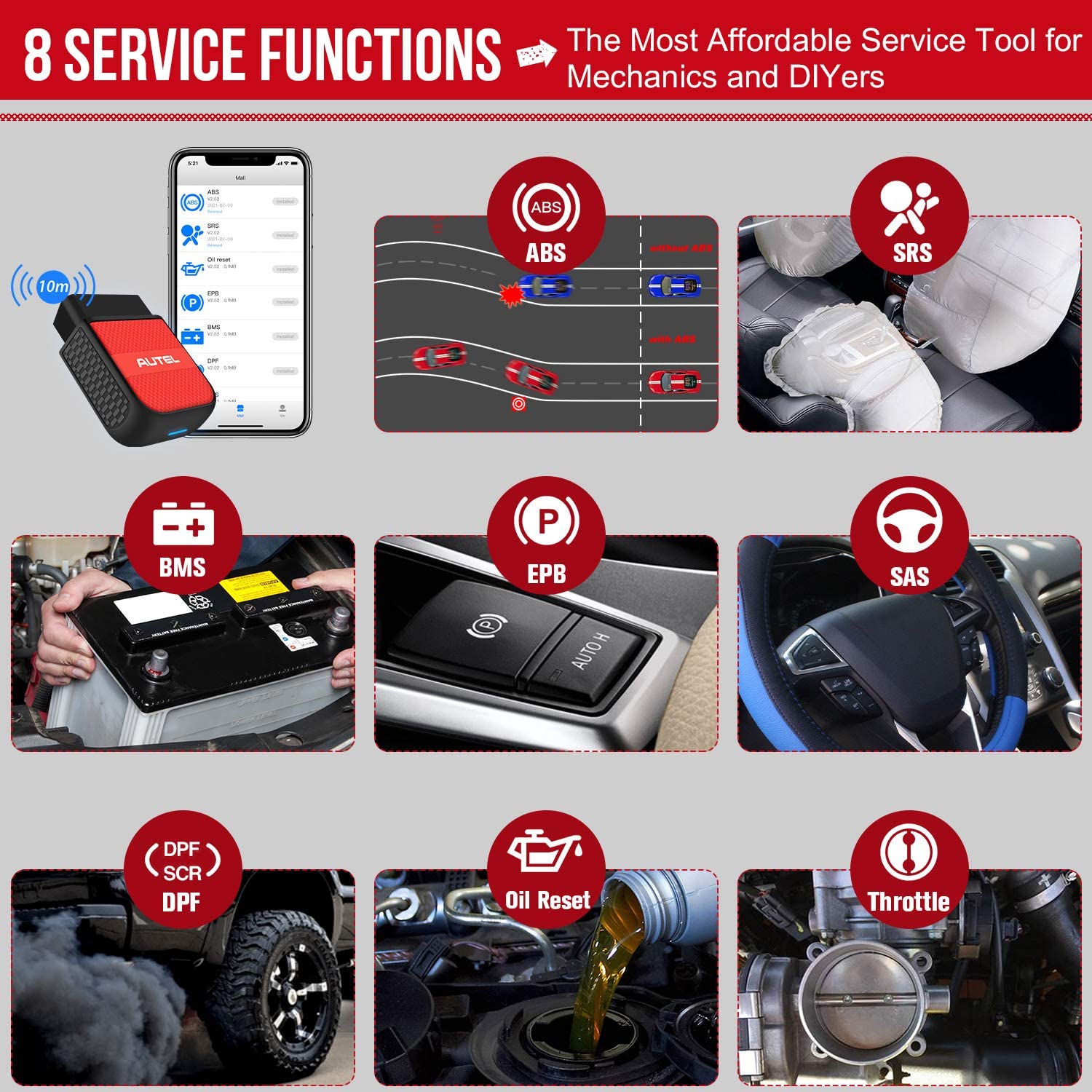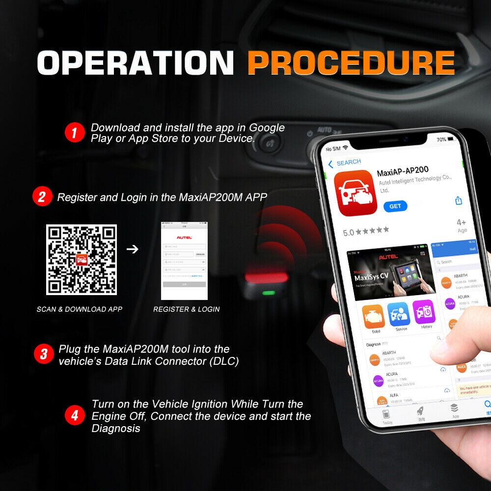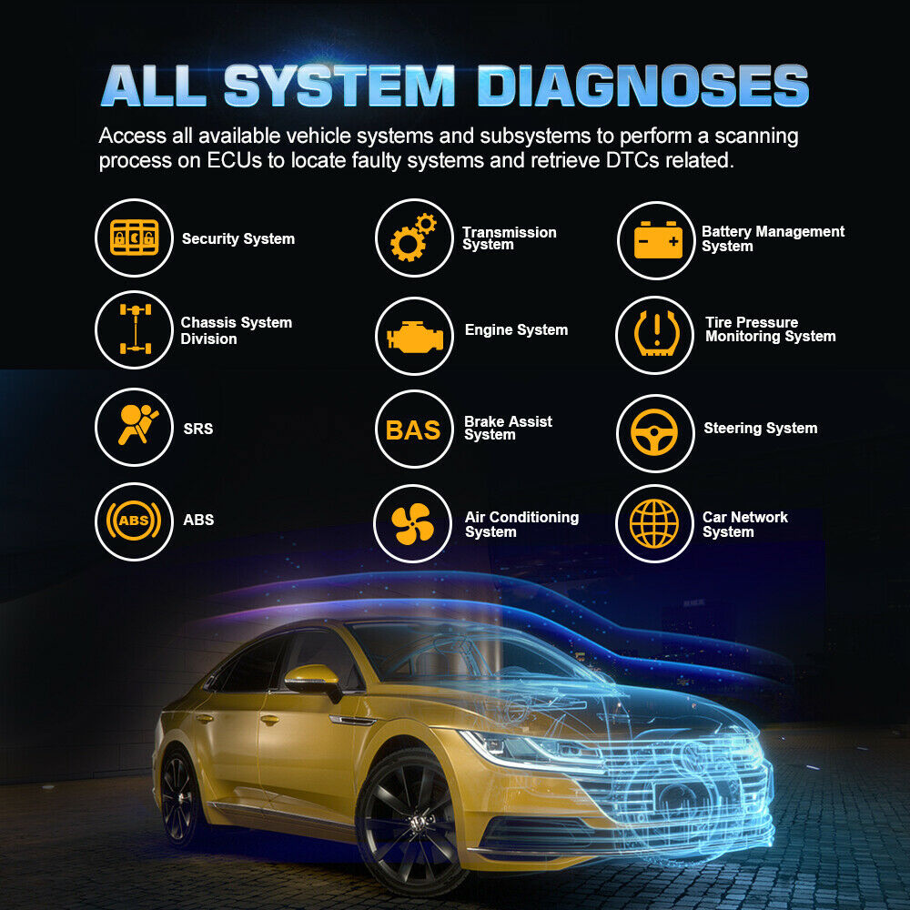AUTEL AP200M, a system diagnostic tool, can get quick access to all the available vehicle systems, such as Engine, Transmission, ABS, SRS, EPB, Immobilizer, IC, Doors, Air Conditioning, Gateway, etc. to perform a comprehensive scanning on ECUs to locate faulty systems and retrieve DTCs related.