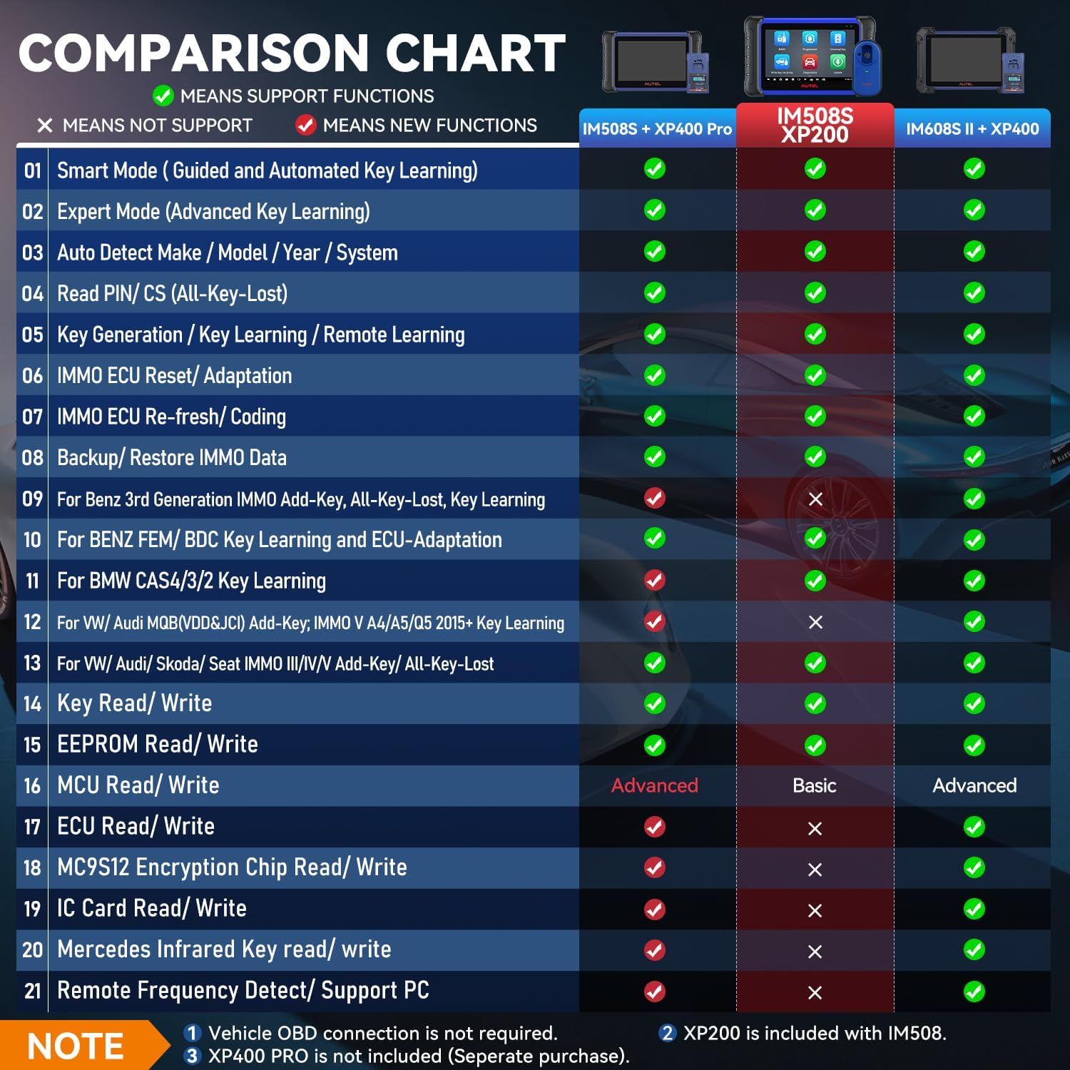 👍【Work with XP400 Pro to Extend IMMO Functions】(Purchase Separately) You don’t have to pay 3000+ b-ucks for a more advanced IMMO scanner but can enjoy the same IMMO key fob programming functions as IM608S II/ IM608 II/ IM608 Pro II. Work with XP400 Pro, IM508S extends its capability to support IMMO functions such as BMW CAS4 K-e-y Learning, IMMO ECU Read & Write, MC9S12 Encryption Chip Read & Write, IC Card Read & Write, Mercedes Infrared K-e-y Read & Write, Remote Frequency Detect, etc.