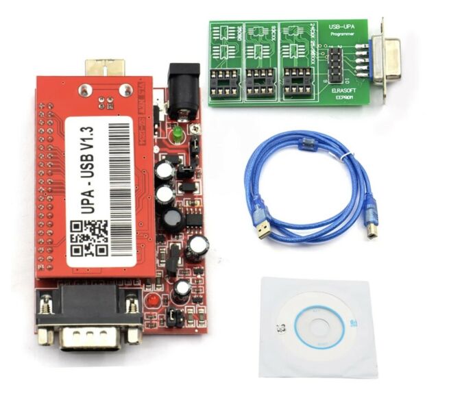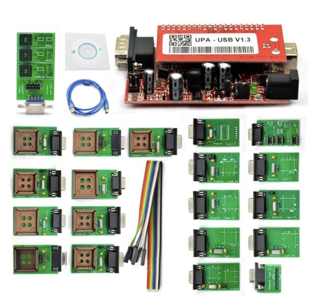 Professional OBD2 UPA ECU Programmer UPA USB V1.3 With Full Adapter ENC Powerful function for programer Top 4 Reasons to Get the UPA USB Programmer 1. Language: English. 2. Hardware Version: V2014 3. Software Vesion: V1.3 4. Support Nec Function, but Has No NEC Adapter in the Package UPA USB Programmer Description: New Upa-usb is the full set with all adapters, The main Device can be directly connected to the Elrasoft.com UUSP (UPA-USB Serial Programmer) or by an optional DB9 male / female 1:1 extension cable. It’s equipped with an 40pin ZIF Socket for all narrow and wide DIP / DIL devices as well as with a 16 pin SOIC ZIF (150mil, narrow) socket to cover most commonly used devices. Device configuration is done over special config keys which make the work convenient and safe compared to wiring up all manually. Additional packages can be covered by commonly available Adapters plugged into the 40 pin ZIF socket. The main Device further includes a 10 pin ISP connector where the included ISP Adapters can be connected using a standard 1:1 flatribbon cable (included). The included PLCC ISP Adapters are to be put directly over the soldered chip of the target device making the work convenient and safe compared to soldering or using clips connecting up all manually. (Power from the UUSP to the ISP target can be enabled or disabled by a jumper next to the 10 pin ISP connector) UPA-USB Device Programmer V1.3 Update Info: Added MC9S12HY64/HA32 support Added Serial Flash memory support: A25L512/010/020/040/080/016/032, SST25VF512A/010A/020B/040B/080B/016B/032B, S25FL004A/008A/016A/032A/064A Added 24C1024, 24C1025 support Added Bulk erase data memory to PICs 16F913-7/946, 12F629/675 Added script function GetPage Added script function AutoBaudRateDevice (hc08 devices only) Added script function GetProgrammerFrameChildCtrl( AChildCtrlName: string): TControl