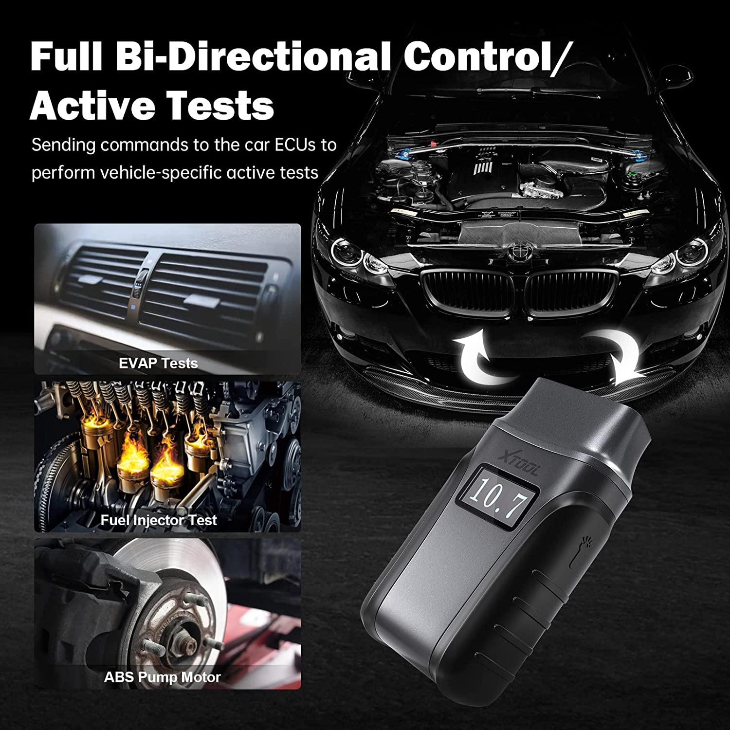 XTOOL A30 is a bi-directional scan tool that can read, clear codes, view live data in all available systems, and perform various active tests like EVAP test, Service Bay Tests, Compression Test, Cylinder Power Balance, Fuel Injector Balance, Fuel Pump Trim Reset, Fuel Composition Reset, Cylinder Deactivation and etc to pinpoint fault locations fast for efficient repairs.
