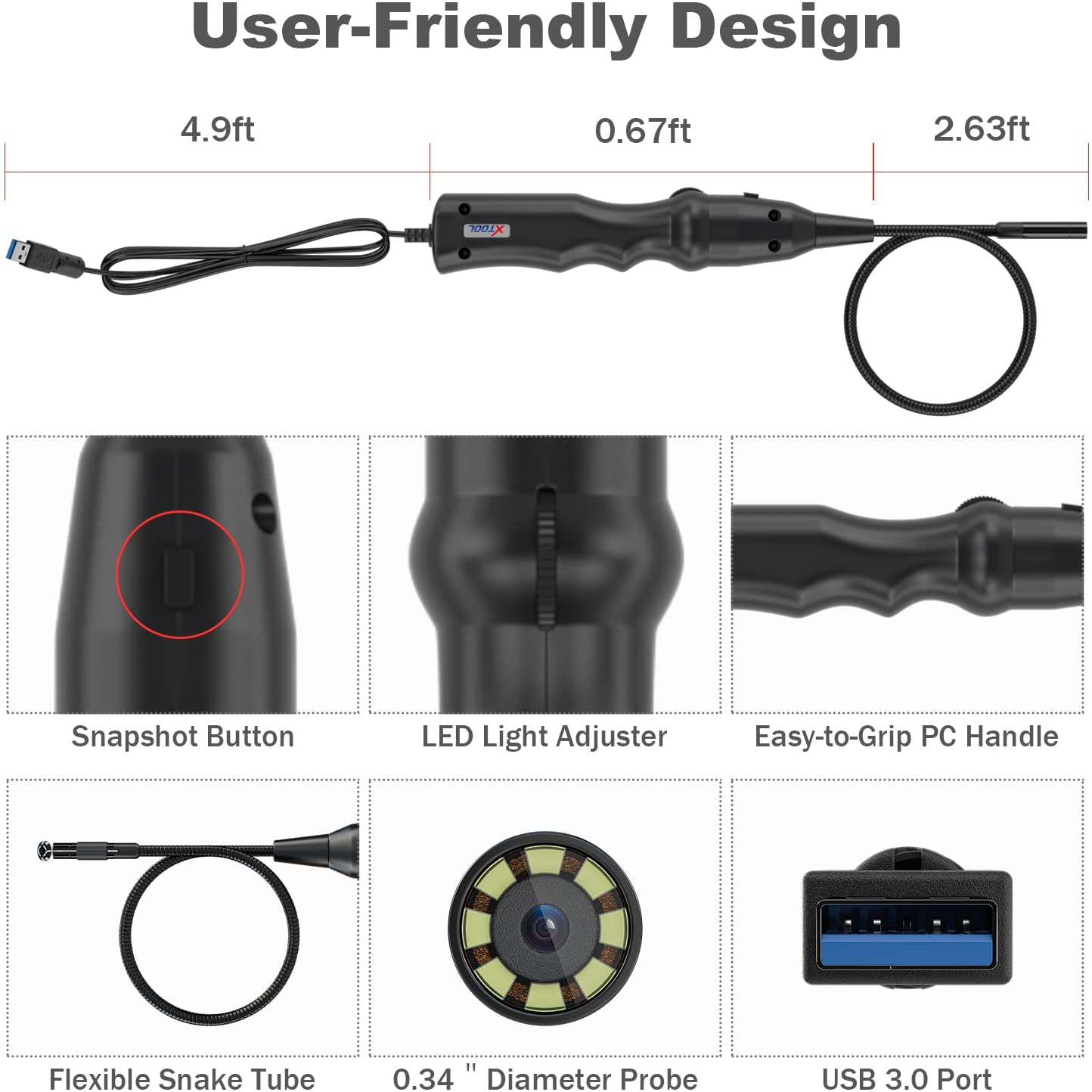 XTOOL XV100 Borescope Inspection Camera with 0.34” Probe LED Illumination USB Endoscope (Work with XTOOL X100 Pad3, D8, A80, etc.)