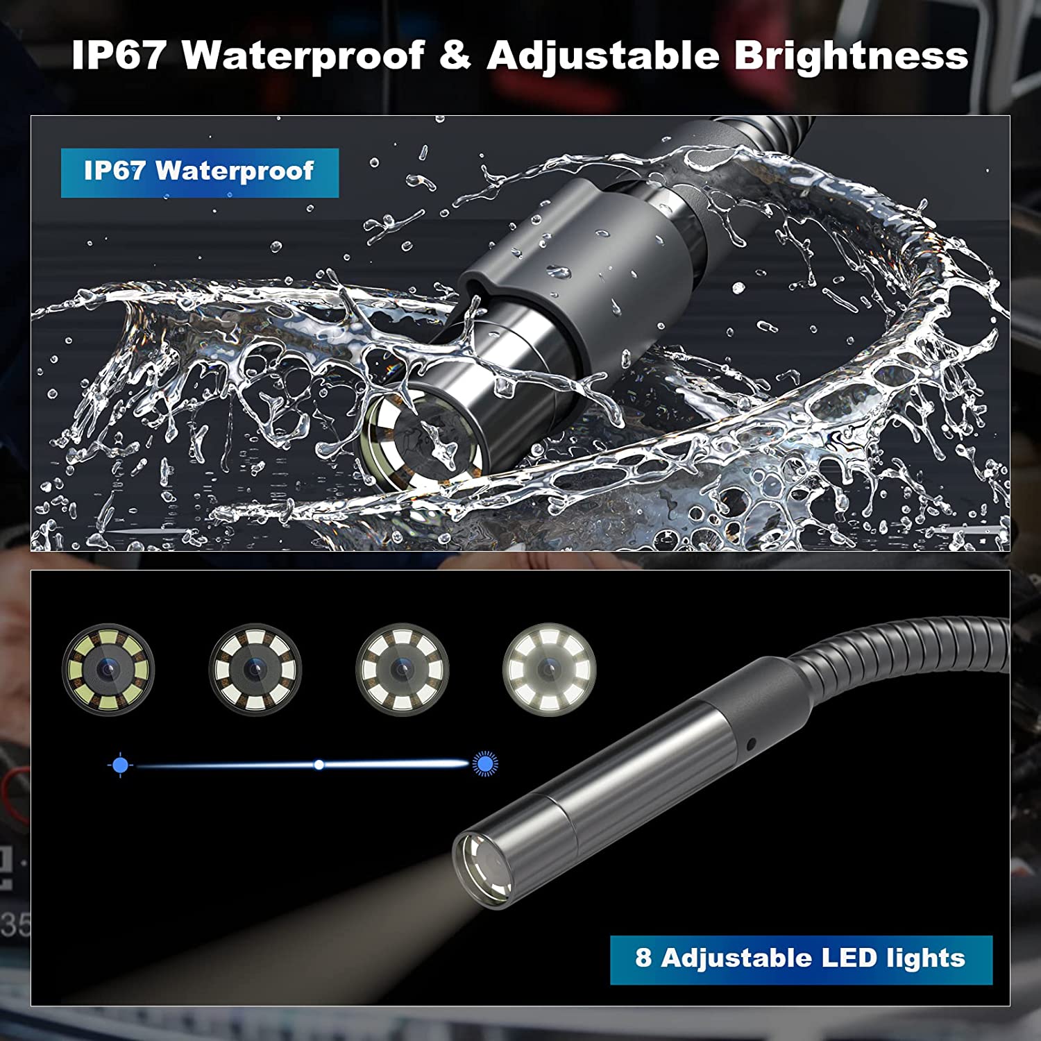 >>> IP67 Waterproof: Can work at an underwater depth of 2.63ft . Do NOT worry about using the videoscope in wet places.